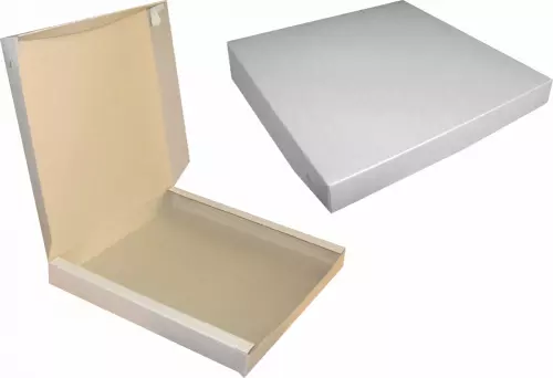 Картон — это многослойная спресованная бумага. Его изготавливают из материалов природного происхождения (древесина, солома), либо из макулатуры, поэтому картонная упаковка не оставляет никакого запаха на пицце при долгом ее хранении. Она хорошо сохраняет тепло благодаря многослойности, а так же защищиает пиццу от повреждений. Картонная упаковка имеет вентиляционные отверстия, что обеспечивает доступ кислорода, и через которые выходит пар и влага. Это позволяет пицце сохранить аппетитный вид и запах.